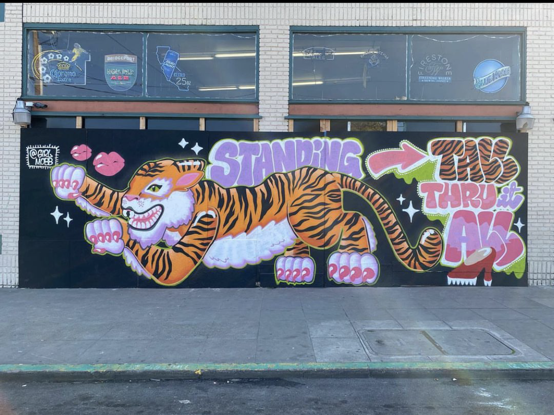 Since 2008, Girl Mobb’s murals have graced indoor and outdoor public spaces, from independent businesses to the streets of San Francisco, New York City and all the way to Art Basel, Miami.
